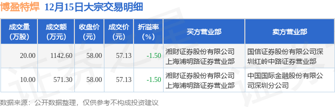 证券之星消息,12月15日博盈特焊发生大宗交易,交易数据如下: