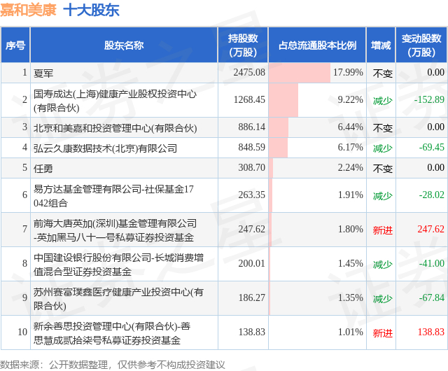 根据嘉和美康2025年三季报公布的十大股东详情如下:
