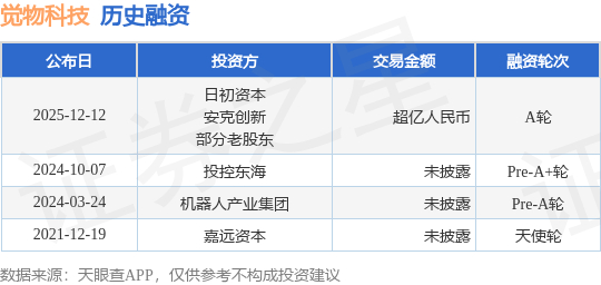 证券之星消息,根据天眼查APP于12月12日公布的信息整理,觉物科技(深圳)有限公司A轮融资,融资额超亿人民币,参与投资的机构包括日初资本,安克创新,部分老股东。