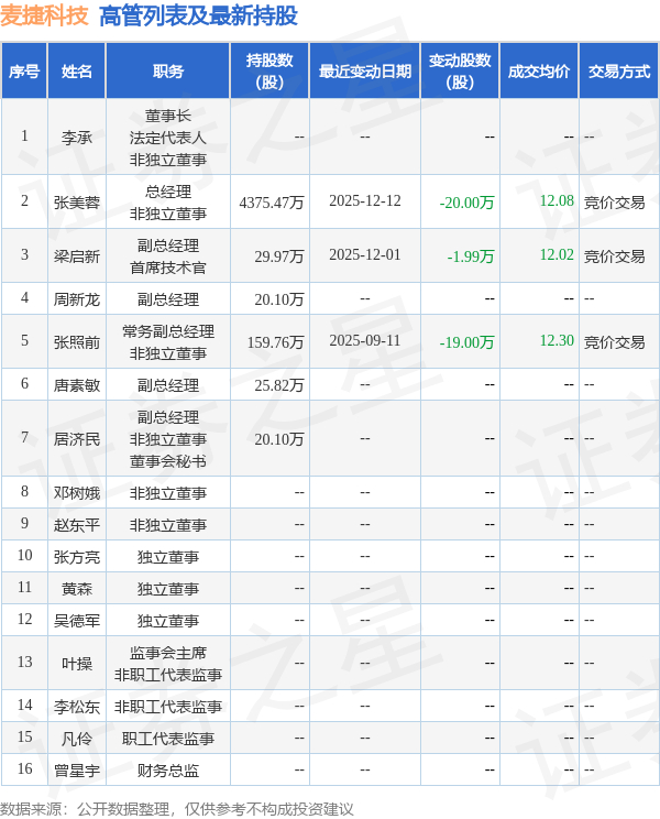 麦捷科技近半年内的董监高及核心技术人员增减持详情如下: