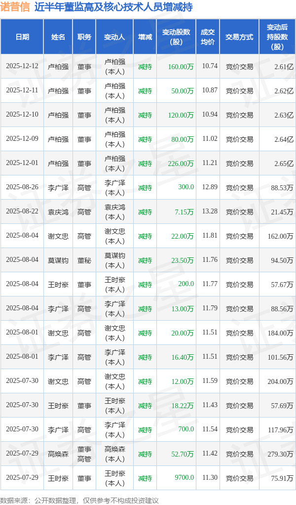 诺普信近半年内的董监高及核心技术人员增减持详情如下: