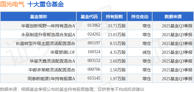 根据2025基金Q3季报公募基金重仓股数据,重仓该股的公募基金共7家,其中持有数量最多的公募基金为华夏基金的华夏创新视野一年持有混合A。华夏创新视野一年持有混合A目前规模为3.67亿元,最新净值0.7347(12月15日),较上一交易日下跌1.57%,近一年上涨22.27%。该公募基金现任基金经理为刘洋。刘洋在任的基金产品包括:华夏磐晟混合(LOF),管理时间为2022年12月28日至今,期间收益率为10.37%;