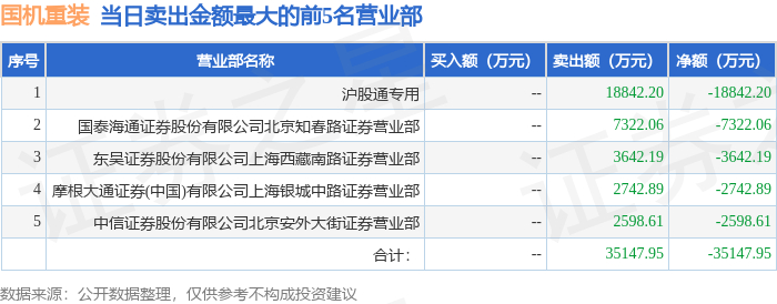 证券之星消息,沪深交易所2025年12月16日公布的交易公开信息显示,国机重装(601399)因有价格涨跌幅限制的日收盘价格跌幅偏离值达到7%的前五只证券登上龙虎榜。此次是近5个交易日内第1次上榜。