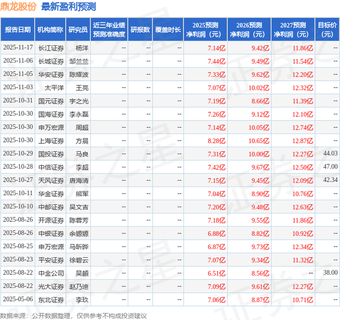 以下是详细的盈利预测信息: