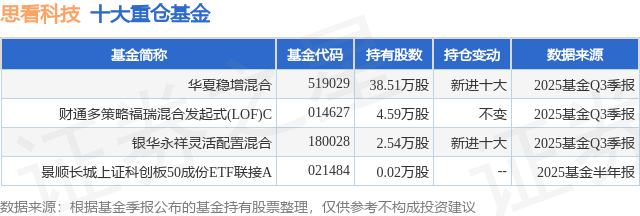 重仓思看科技的公募基金请见下表:
