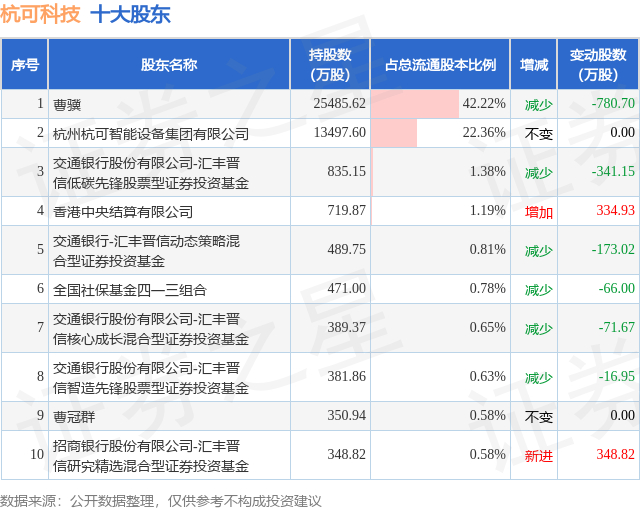 根据杭可科技2025年三季报公布的十大股东详情如下: