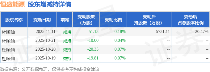 截至2025年12月19日收盘,恒盛能源(605580)报收于32.98元,下跌2.02%,换手率4.05%,成交量11.34万手,成交额3.83亿元。