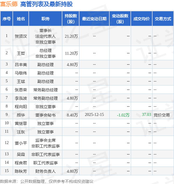 富乐德近半年内的董监高及核心技术人员增减持详情如下: