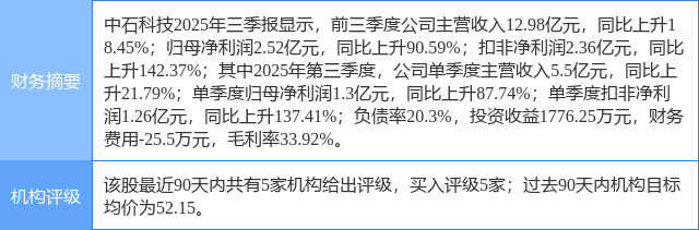 2025年9月30日,华鑫证券研究员任春阳,吕卓阳,何鹏程发布了对中石科技的研报《公司动态研究报告:高分子材料及热管理解决方案领导者,数据中心液冷打造新的增长曲线》,该研报对中石科技给出“买入”评级。研报中预测公司2025-2027年净利润分别为2.75、3.64、4.61亿元,EPS分别为0.92、1.21、1.54元,当前股价对应PE分别为45、34、27倍,我们看好数据中心液冷和端侧AI带来的新的成长机会,维持公司“买入”投资评级。证券之星数据中心根据近三年发布的研报数据计算,该研报作者对此股的盈利预测准确度为63.56%。