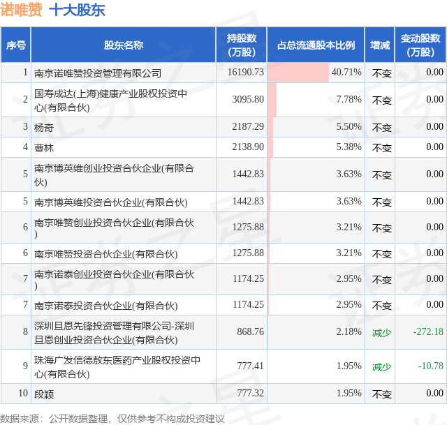 根据诺唯赞2025年三季报公布的十大股东详情如下: