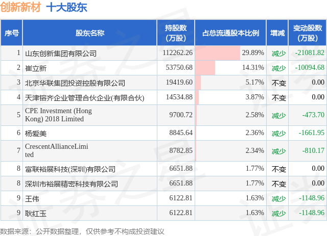 根据创新新材2025年三季报公布的十大股东详情如下: