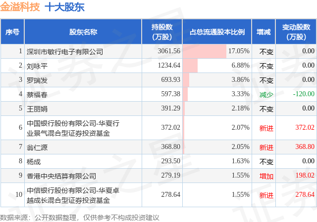 根据金溢科技2025年三季报公布的十大股东详情如下: