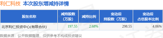 证券之星消息,12月23日利仁科技发布公告《利仁科技:关于持股5%以上股东暨控股股东、实际控制人的一致行动人权益变动触及1%整数倍暨股份减持计划实施完毕的公告》,其股东北京利仁投资中心(有限合伙)于2025年11月5日至2025年12月23日间合计减持197.55万股,占公司目前总股本的2.6845%,变动期间该股股价上涨0.44%,截止12月23日收盘报29.5元。