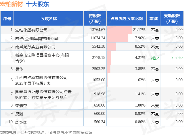 根据宏柏新材2025年三季报公布的十大股东详情如下:
