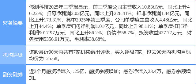 今日伟测科技(688372)涨6.91%,收盘报110.51元。