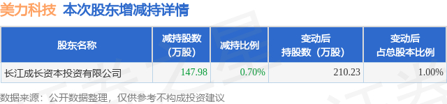 证券之星消息,12月29日美力科技发布公告《美力科技:关于公司股东减持时间届满的公告》,其股东长江成长资本投资有限公司于2025年9月29日至2025年12月28日间合计减持147.98万股,占公司目前总股本的0.7011%,变动期间该股股价上涨5.18%,截止12月26日收盘报26.61元。