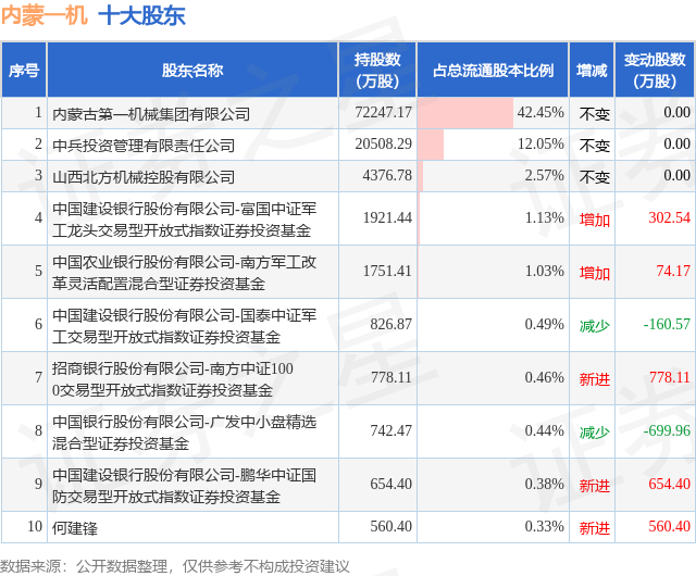 根据内蒙一机2025年三季报公布的十大股东详情如下: