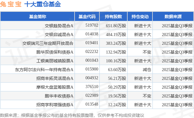 重仓兔 宝 宝的前十大公募基金请见下表: