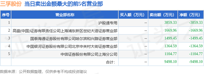 证券之星消息,沪深交易所2026年1月13日公布的交易公开信息显示,三孚股份(603938)因有价格涨跌幅限制的日收盘价格跌幅偏离值达到7%的前五只证券登上龙虎榜。此次是近5个交易日内第3次上榜。