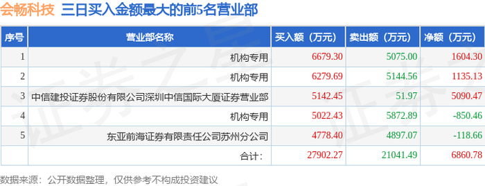 证券小知识:龙虎榜是交易所披露的竞价交易公开信息,现身龙虎榜的个股都是当日最为活跃的个股,是投资者日常重点关注的数据。交易所公布当日买入金额和卖出金额前五名的席位,其中一些席位代表特殊意义,如机构专用席位是指基金专用席位、券商自营专用席位、社保专用席位、券商理财专用席位、保险机构专用席位、保险机构租用席位、QFII专用席位等机构投资者买卖证券的专用通道和席位。深股通专用、沪股通专用为北向资金的交易席位。从龙虎榜数据可以发现和研究机构、游资和散户的资金动向。一些营业部席位经常上榜,市场知名度较高,投资者整理代表散户、游资、量化等不同资金的营业部席位。