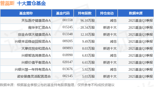 根据2025基金Q3季报公募基金重仓股数据,重仓该股的公募基金共9家,其中持有数量最多的公募基金为天弘基金的天弘医疗健康混合A。天弘医疗健康混合A目前规模为2.63亿元,最新净值1.884(1月15日),较上一交易日下跌1.47%,近一年下跌6.15%。该公募基金现任基金经理为吕俏。