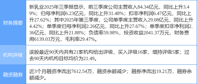 今日新乳业(002946)涨5.14%,收盘报19.01元。