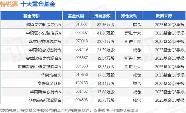 重仓特锐德的前十大公募基金请见下表: