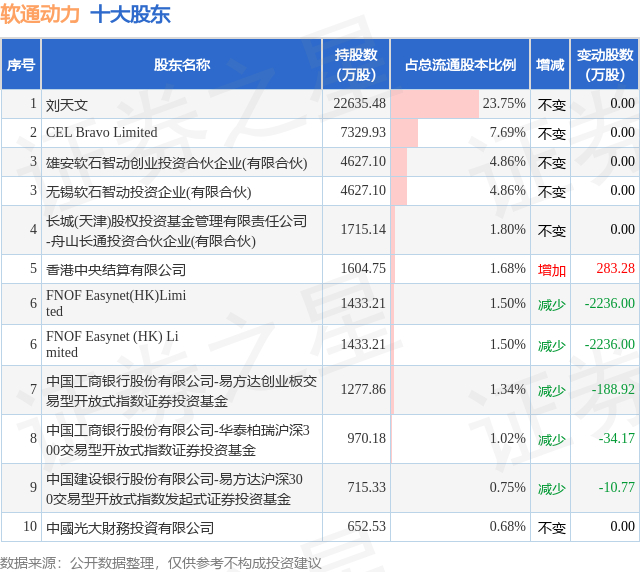 根据软通动力2025年三季报公布的十大股东详情如下: