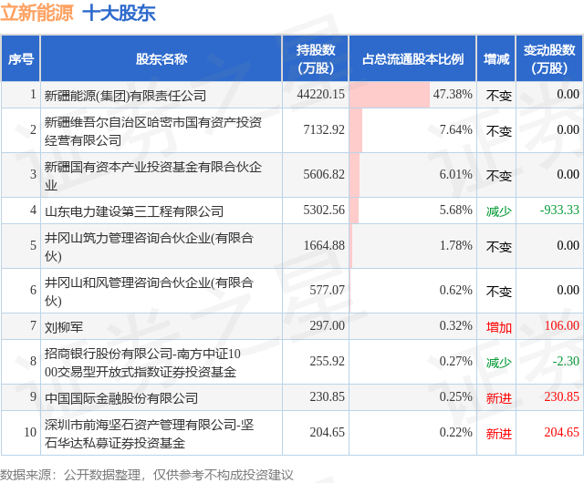 根据立新能源2025年三季报公布的十大股东详情如下: