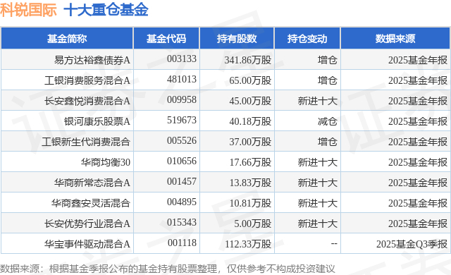 根据2025基金年报公募基金重仓股数据,重仓该股的公募基金共9家,其中持有数量最多的公募基金为易方达基金的易方达裕鑫债券A。易方达裕鑫债券A目前规模为60.5亿元,最新净值1.8291(1月21日),较上一交易日上涨0.32%,近一年上涨21.24%。该公募基金现任基金经理为胡文伯。胡文伯在任的基金产品包括:易方达鑫转招利混合A,管理时间为2023年3月16日至今,期间收益率为32.74%;易方达磐固六个月持有期混合A,管理时间为2023年6月21日至今,期间收益率为7.65%。