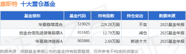 重仓康斯特的公募基金请见下表: