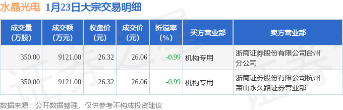 证券之星消息,1月23日水晶光电发生大宗交易,交易数据如下: