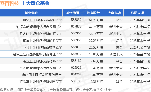重仓容百科技的前十大公募基金请见下表:
