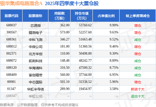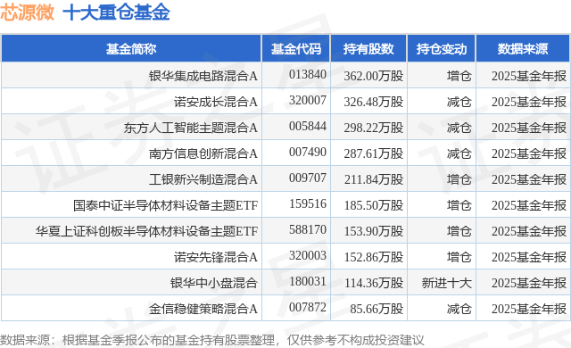 重仓芯源微的前十大公募基金请见下表: