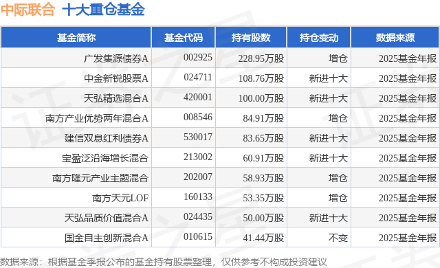 重仓中际联合的前十大公募基金请见下表: