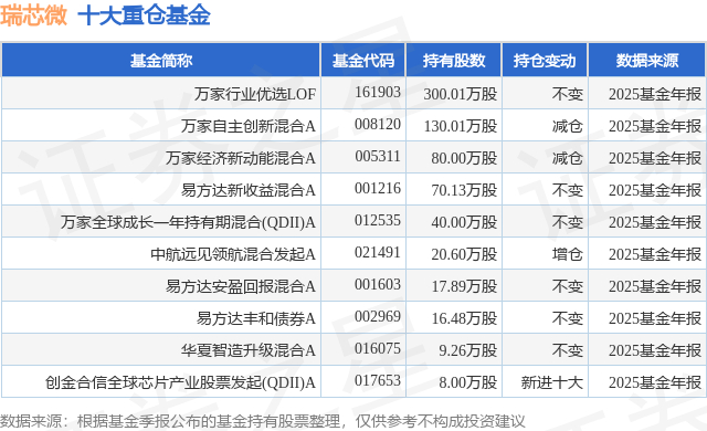 重仓瑞芯微的前十大公募基金请见下表: