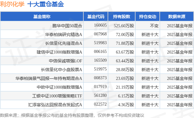 重仓利尔化学的前十大公募基金请见下表: