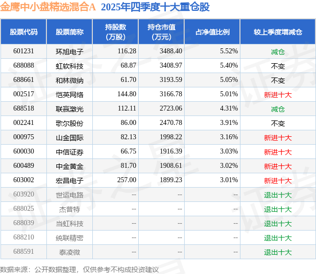 重仓和林微纳的公募基金请见下表: