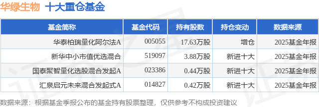 重仓华绿生物的公募基金请见下表: