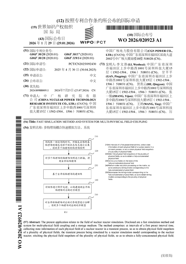 证券之星消息,根据企查查数据显示中国广核(003816)公布了一项国际专利申请,专利名为“多物理场耦合快速模拟方法、系统”,专利申请号为PCT/CN2025/092430,国际公布日为2026年1月29日。