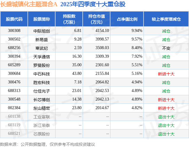 长盛城镇化主题混合A的前十大重仓股如下: