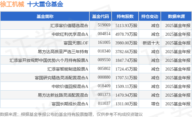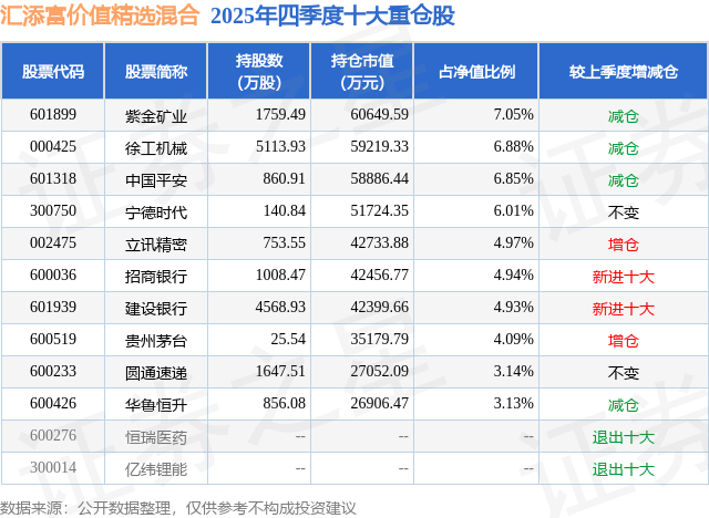 根据2025基金年报公募基金重仓股数据,重仓该股的公募基金共221家,其中持有数量最多的公募基金为汇添富基金的汇添富价值精选混合。汇添富价值精选混合目前规模为86.03亿元,最新净值3.092(2月2日),较上一交易日下跌2.52%,近一年上涨25.95%。该公募基金现任基金经理为劳杰男。劳杰男在任的基金产品包括:汇添富研究优选灵活配置混合,管理时间为2019年1月31日至今,期间收益率为30.66%;汇添富红利增长混合A,管理时间为2019年4月26日至今,期间收益率为89.28%;汇添富开放视野中国优势六个月持有股票A,管理时间为2020年7月22日至今,期间收益率为-18.05%。