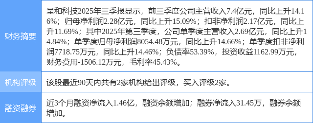 2025年11月9日,太平洋研究员王亮,王海涛发布了对呈和科技的研报《呈和科技2025年三季报点评:国产替代与海外扩张支撑公司稳健增长》,该研报对呈和科技给出“买入”评级。研报中预计2025-2027年EPS分别为1.49元、1.75元、2.08元。维持“买入”评级。证券之星数据中心根据近三年发布的研报数据计算,该研报作者对此股的盈利预测准确度为73.89%。