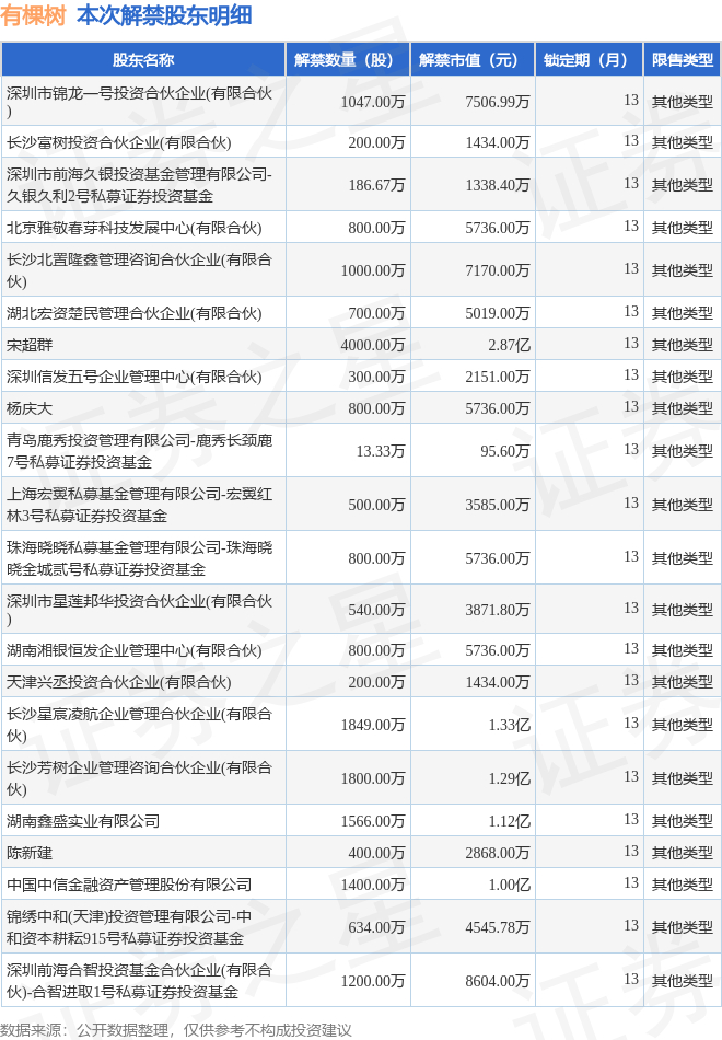 本次解禁涉及股东明细见下表: