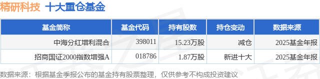 重仓精研科技的公募基金请见下表: