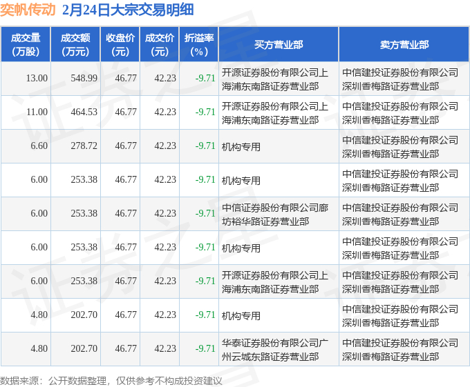 证券之星消息,2月24日奕帆传动发生大宗交易,交易数据如下: