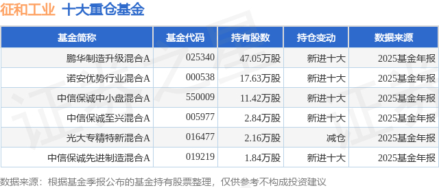 重仓征和工业的公募基金请见下表: