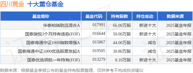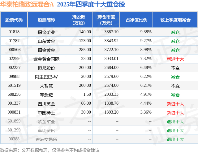 根据2025基金年报公募基金重仓股数据,重仓该股的公募基金共5家,其中持有数量最多的公募基金为华泰柏瑞基金的华泰柏瑞致远混合A。华泰柏瑞致远混合A目前规模为1.23亿元,最新净值1.7733(2月27日),较上一交易日上涨1.49%,近一年上涨64.02%。该公募基金现任基金经理为叶丰。叶丰在任的基金产品包括:华泰柏瑞锦瑞债券A,管理时间为2024年6月14日至今,期间收益率为20.87%;华泰柏瑞锦华债券A,管理时间为2025年3月25日至今,期间收益率为4.24%;华泰柏瑞安盛一年持有期债券A,管理时间为2025年7月9日至今,期间收益率为1.83%。