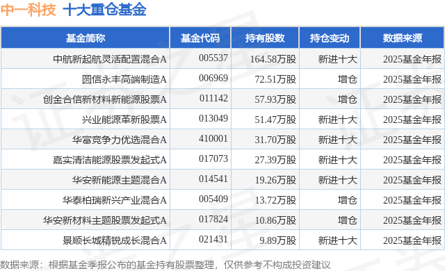 重仓中一科技的前十大公募基金请见下表: