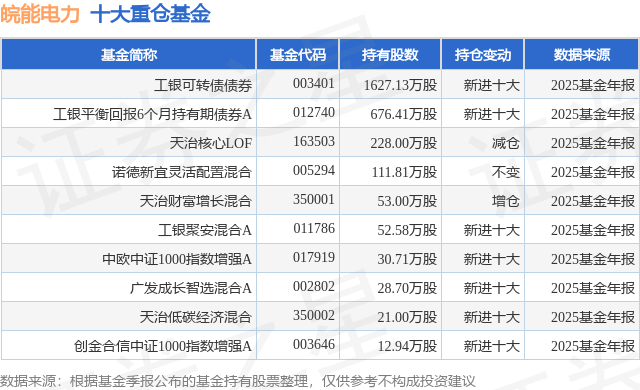 根据2025基金年报公募基金重仓股数据,重仓该股的公募基金共10家,其中持有数量最多的公募基金为工银瑞信基金的工银可转债债券。工银可转债债券目前规模为41.43亿元,最新净值1.897(3月11日),较上一交易日上涨1.16%,近一年上涨12.48%。该公募基金现任基金经理为黄诗原。黄诗原在任的基金产品包括:工银聚安混合A,管理时间为2023年11月3日至今,期间收益率为50.89%;工银平衡回报6个月持有期债券A,管理时间为2025年1月3日至今,期间收益率为15.23%;工银双盈债券A,管理时间为2025年7月29日至今,期间收益率为-0.86%。